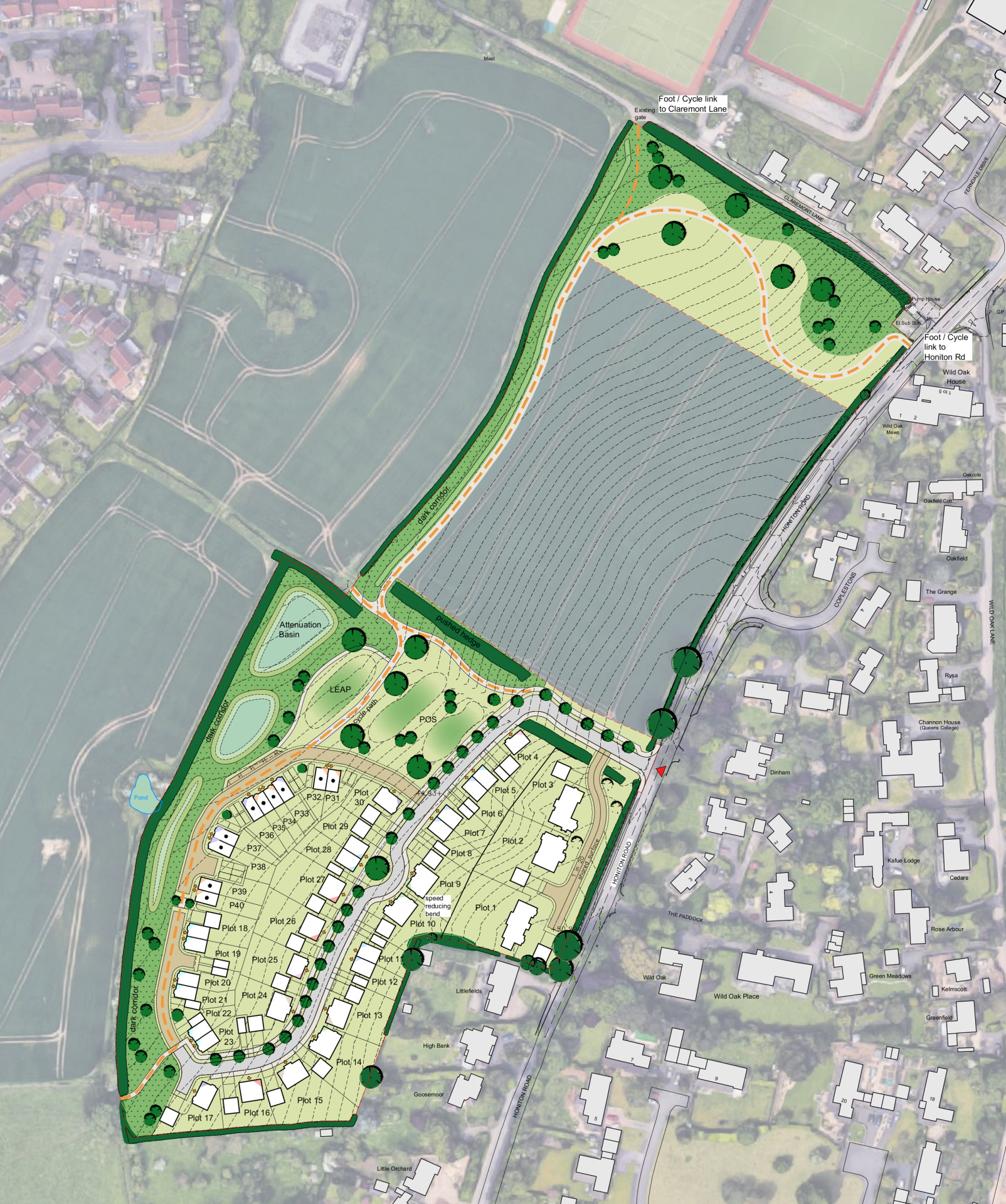Part of the northern field will be retained as informal public open space, play spaces and landscaped areas, which will help achieve biodiversity net gain.